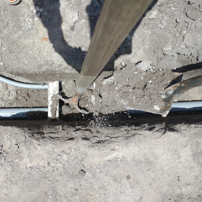 After some test placements and few more tweaks with the heat gun, the radius was perfect. Now to dig the remaining portion of the trench. Enough of the original PVC must be exposed allowing the Planner to lift it, cut it ever so carefully so as to not cut into the electrical wire running inside. Cutting the wire would be wasteful and require additional work of running new line from the main panel. While hand digging the intersecting trench, the smaller PVC for the well was located and finally six inches further east than remembered the main three inch PVC line was located.