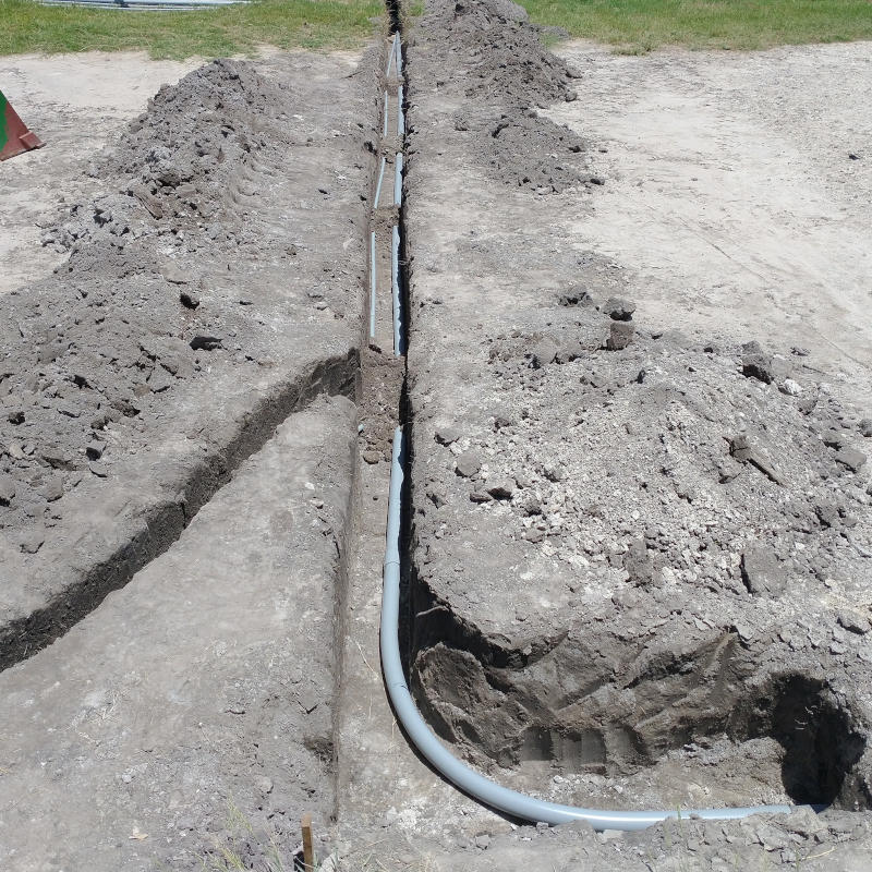 With main line located, the PVC was cut and the new bendy radius PVC was laid. As with all PVC projects, the PVC is laid out for fitting, glued outwards working towards the final destination. This required the new PVC to be fitted under the other lines already laid. Luckily the new piece ends were not directly under the old lines giving plenty of room to work.