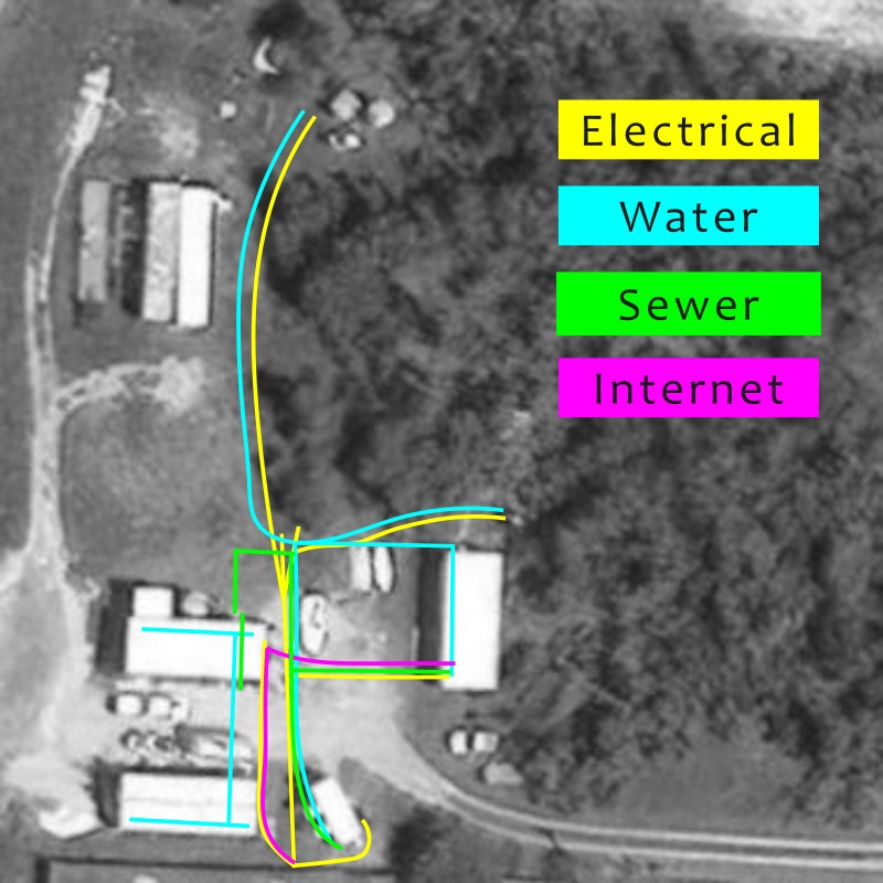 I don’t know how you feel about it, but to me ever since The Hole to Nowhere BIF is forever digging holes and shoveling trenches. Planner dug holes, Kid dug holes, and Doggo dug holes. Holes for fun, holes for poles, holes for water. Tractor dug trenches, hand dug trenches, Kid dug trenches. Trenches for electrical, trenches for water/sewer, and trenches for internet. There are so many trenches crisscrossing the property that last year I created a cheat sheet showing approximate locations. Approximate being the key word. When digging a hole for small things as potted plants I consider the hole safe. Anything else it would best to call 411 for reference. Maybe not today or tomorrow as this information is still fresh. In five years when so many things have been lost to time, a call should be given top priority. We often joke that in time we are going to ask the Catter to come with one if his numerous metal detectors to mark the lines with spray paint, then have my cousin come with his drone for overhead pictures, and then finally super impose the images on a CAD drawing for accuracy.