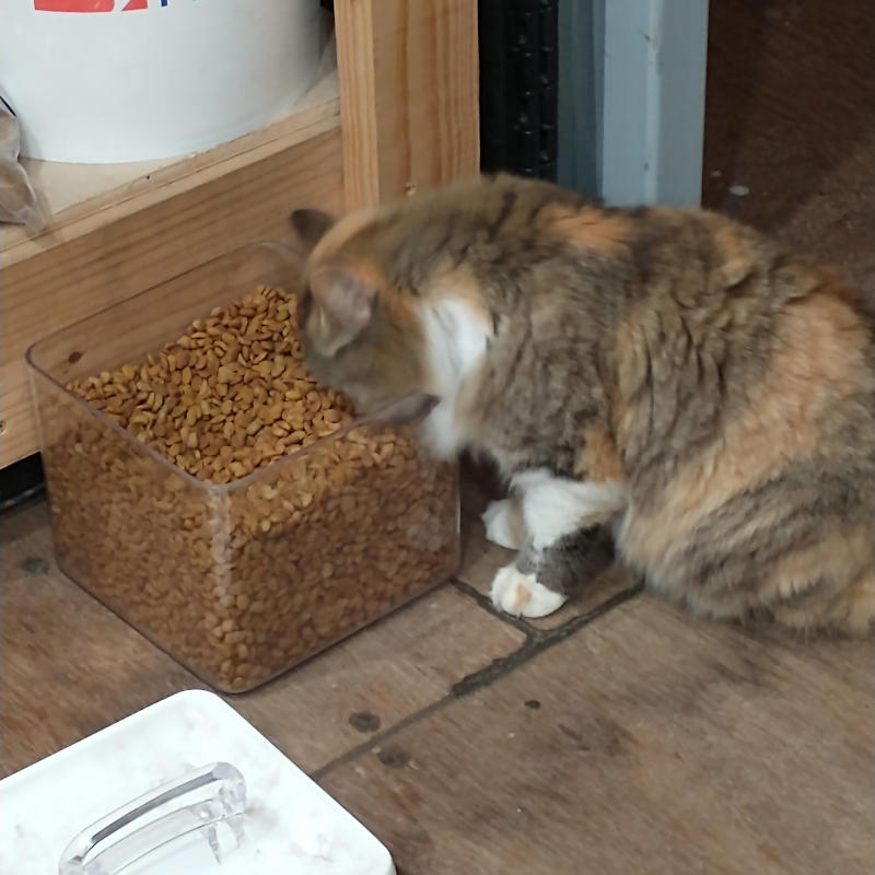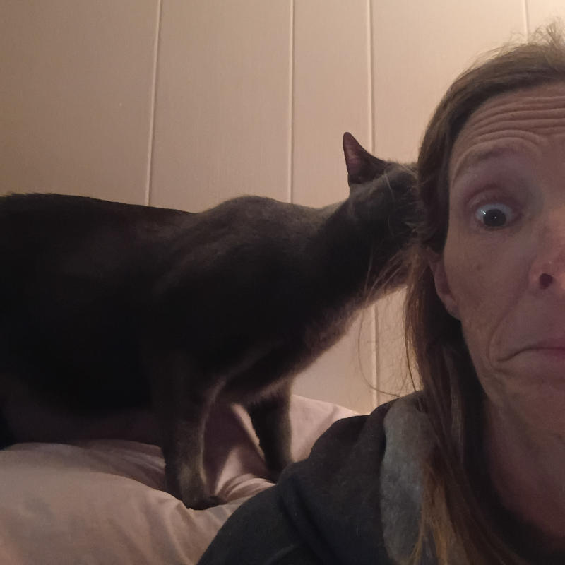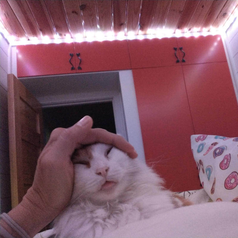 Me, on the other hand, even fours months after IT started cannot tell you what happened. All I know is there was something wrong and I couldn’t eat. Then I couldn’t drink. Not even water except for sips at a time. If I was lucky. For days, then weeks, and when it turned into a month and half, the appointments started. So many doctors, so many tests, so many unknowns, so much sleep. Sleep 12-16 hours and still need two or three naps a day. How work was ever accomplished I cannot say when there were days I was too tired to even feed the cats. Instead opted to just open the food bucket and let them graze like pigs at the trough. Hotdog really took to this fashion of eating. The Fuzzy Foot would keep me company and offered me small moments when I was alone in the bed, again.