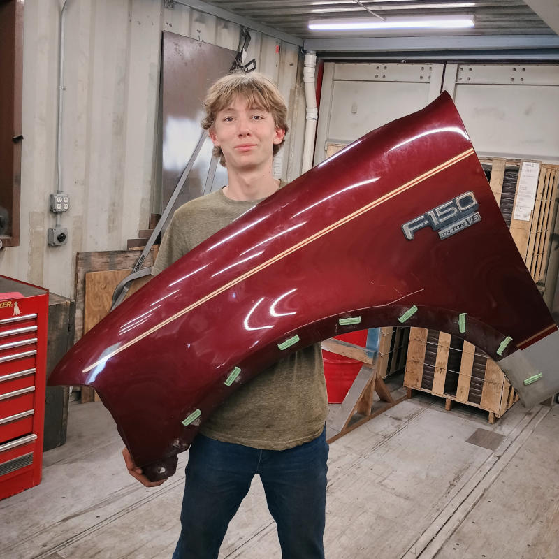 My first morning home I went to bother the Kid like I do and on way the first thing I notice is truck damage. Six months to date before the Kid messed up his truck. Apparently it happened while I was gone and the boys chose to not tell me as nothing happened, it was self inflicted injury and fixable, and I didn’t need undue stress with everything else going on. When the “incident” was brought up in casual passing, the boys busted out laughing. They had a bet on how long it would take me to notice. FYI, I was way ahead of their guesses. And the Planner, he continued to restore the Ford.