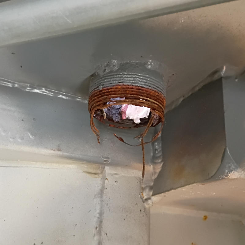 December. As we were packing up for the Thanksgiving travels in the pouring rain, it came to my attention the Work Box had developed a roof look. Or two. Ok, three. Only one was a major problem as it was directly over the desk. All the desk stuff was removed, the desk lined with plastic, plastic covered with towels, and a bucket placed under the drip. Less than an 1″ was in the bucket upon our return a week later. Yeah. Over the next month, the major leak was fixed along with the removal of the old downspouts. The black pipe pipe rusted out at the PVC junction. Now there are no black pipe downspouts, all plastic. Since the Planner has it in head to fix all these downspouts next year I will write a much longer detailed post then.