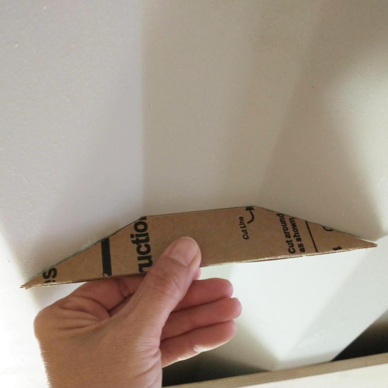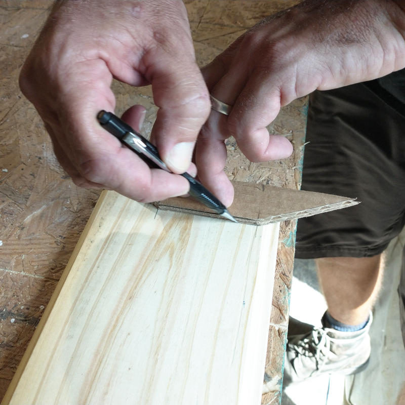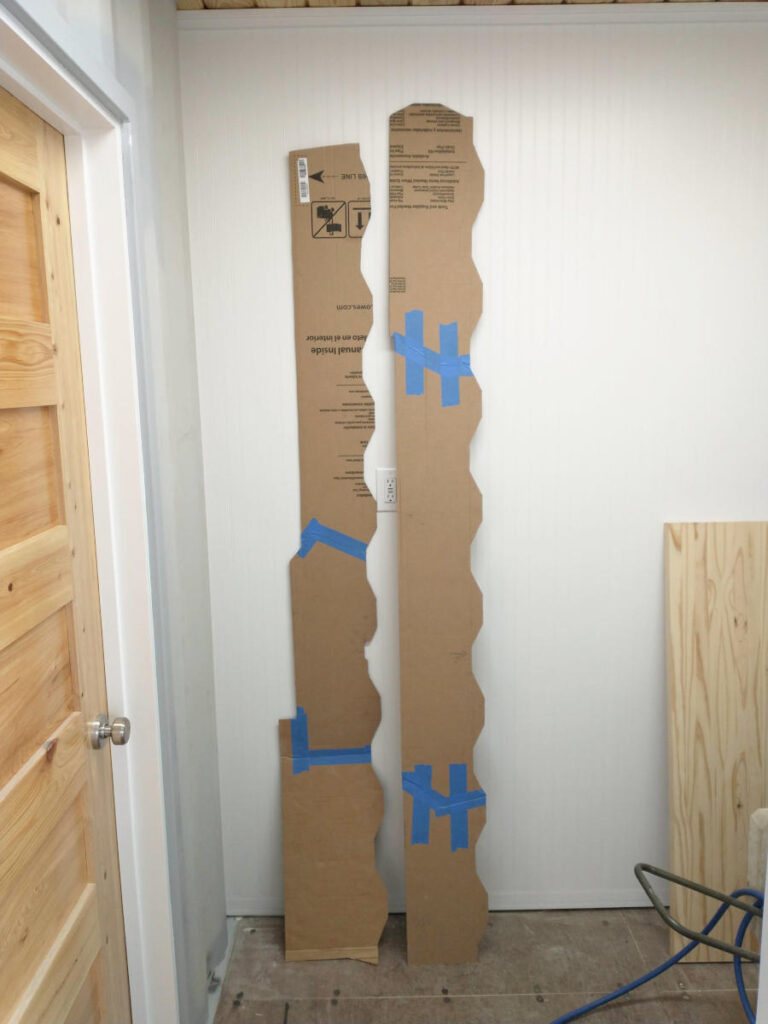 Each individual corrugation had to have its very own template. In theory, each corrugation should have been the same but in practice they were not. Once each quadrilateral template matched the wall, the template was then transferred the corresponding long template for tracing onto the ceiling board.