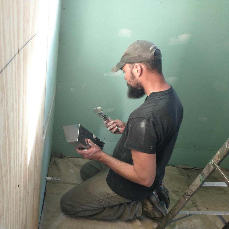 Day two, while the Planner taped and floated the bathroom, the Doubter installed insulation on the bedroom west wall and hung rock the south wall. It was during the tape and floating of the bathroom that the plans got sticky.