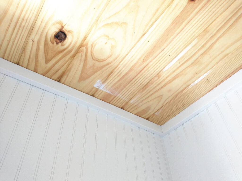 While laying on the floor staring at the ceiling trying not to cry at the unfairness of it all, an equally big problem was discovered. Gaps between the trim board and the bead board. As it turns out, the bead board was not entirely flat with the world as there is some spacing showing through.