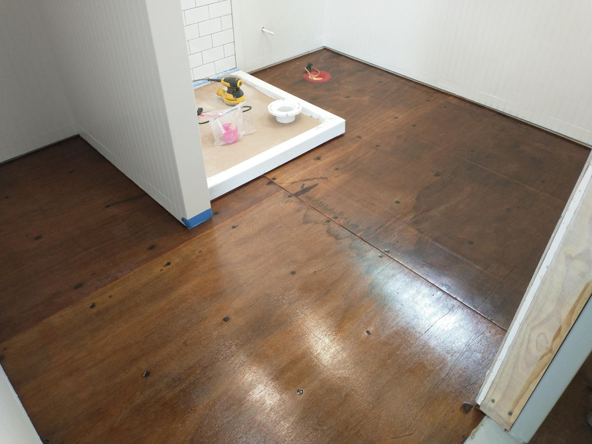 Time flies. We all know this rationally but mentally is a different story. Day to day living is just busy with the day to day living responsibilities. Two floor shellac test samples were done way back in March when with Bathroom Ceiling Shellac. Three full months have come and gone. Sure there were materials orders, plans laid out, and procedures to procedure. But still!