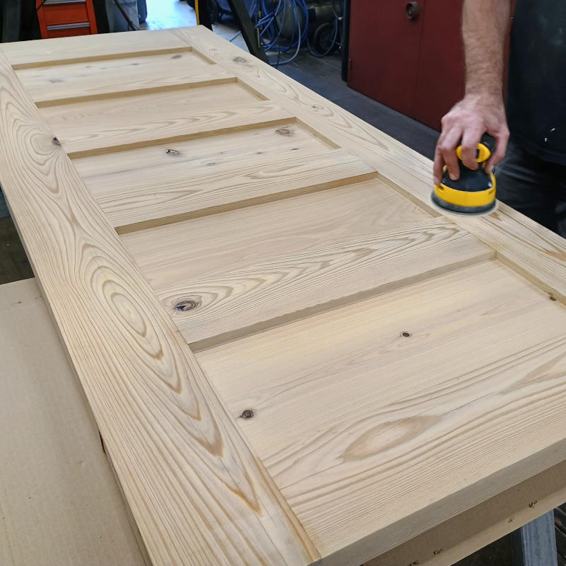 Way back last year sometime during the bedroom being painted and bedroom cabinets having their drawer slides installed the Planner sanded and applied four layers of shellac to the bedroom door. Poor door, bet it had feelings of unwant as it has been sitting against the wall since the Doubter came back in June. Six months of working around the door wishing it was installed. Door started in December and completed in the middle of January.