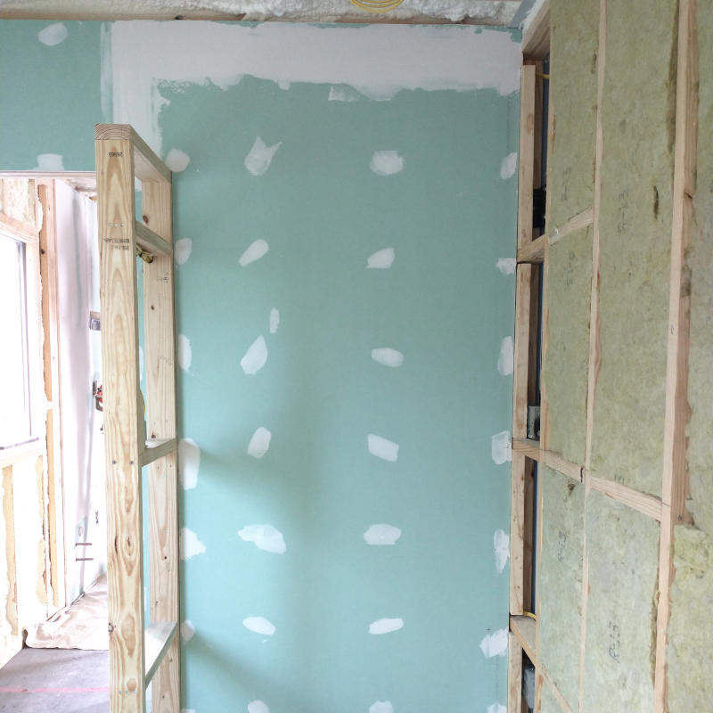 While wishing for cooler temperatures, the walls were finished taped and floated. This is something that takes a significant amount of time to complete when A) the person installing does not have loads of experience and B) the walls were not straight due to the framework not being plum with the world. Note to self, ensure framework is flush. It is better to lose space in the main living space to ensure the walls are flush, flat, straight, even, level, square, workable.