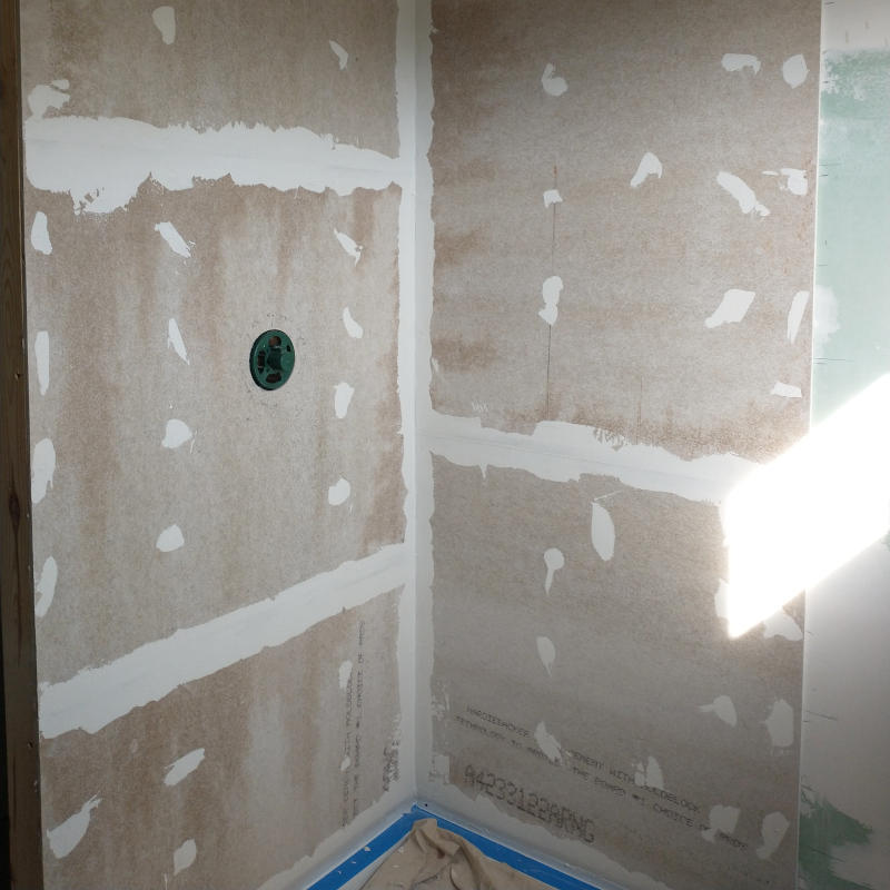 Day One. March 23 and it is hot, hot, hot. Only two boards into hanging Hardiebacker fiber cement with moldblock boards and things are not going well. Tempers are short, patience is frazzled. If looks could kill the red faced sweaty kid would be dead with those laser beams being shot out of the Planner’s eyeballs. Yikes!