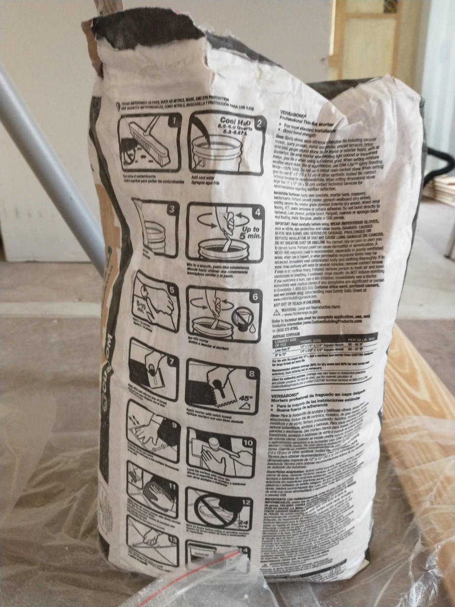 Yes, easy. Even the instructions on the thinset bag say so as they are designed in Lego fashion. And Lego instructions make putting together the World Art Map with its 11,000 pieces or the beloved Millennium Falcon and all its mere 7500 pieces seem like child’s play. Everyone knows this, right? Thinset instructions simply show mix, apply, grout.