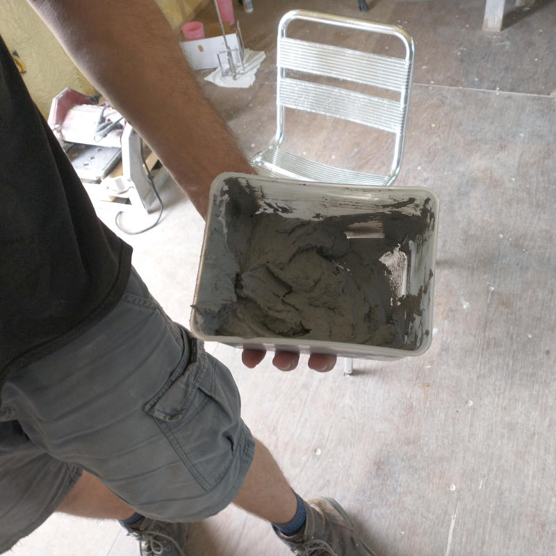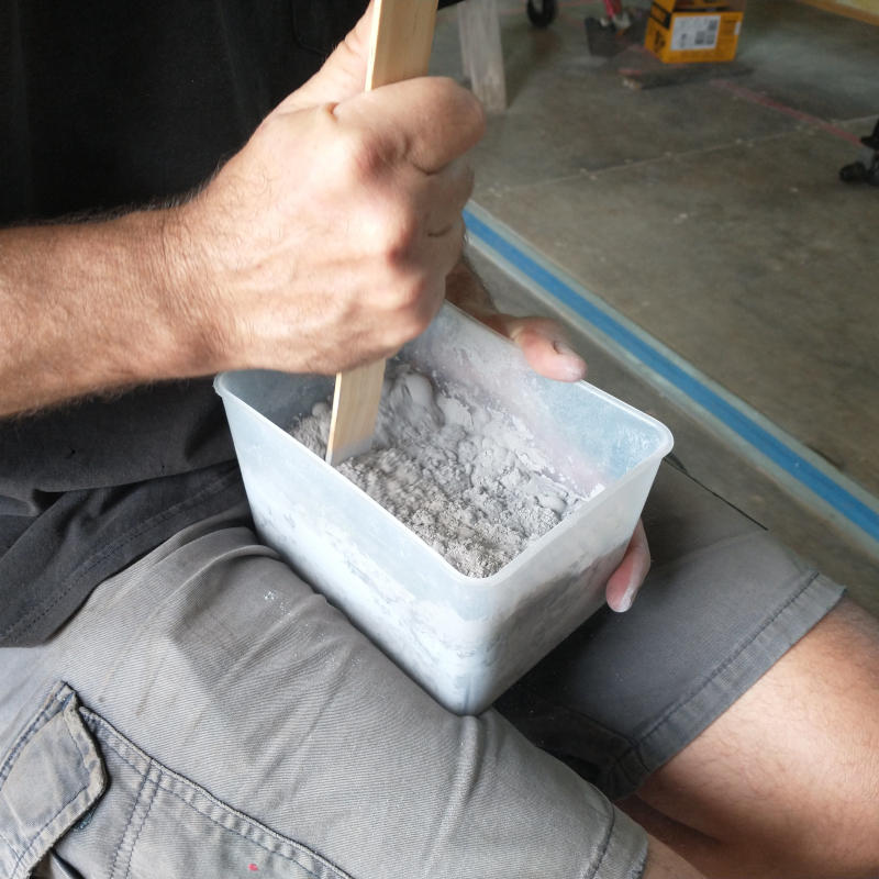 Following the directions on the grout bag, powder was weighed, water was measured, and the two were mixed for correct amount of time and not one second over. Grouting was the simplest of all procedures. Wipe on in one direction, wipe on in the opposite direction, wipe off.