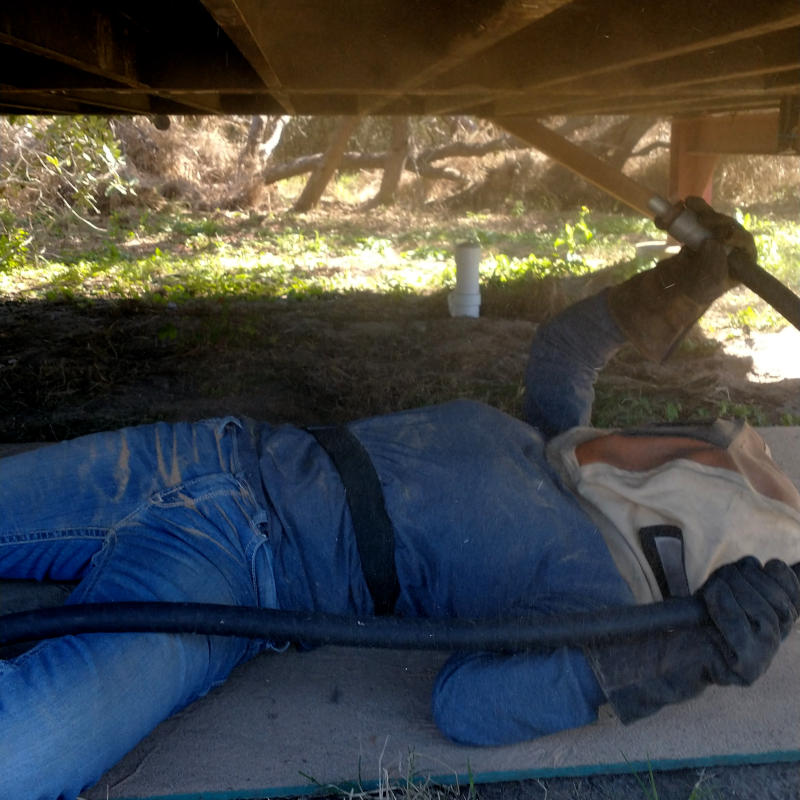 After having completed the holidays, the electrical, and the water lines, we returned back to underside of the boxes to remove the small bits of rust, the vast amount of dirt, and any debris that has accumulated over the years. This was made easy by usage of a sand blaster. I was not worried about removing down to white clean just a quick washing. However, if I saw a really rusty section that was knocked out as preventative maintenance.