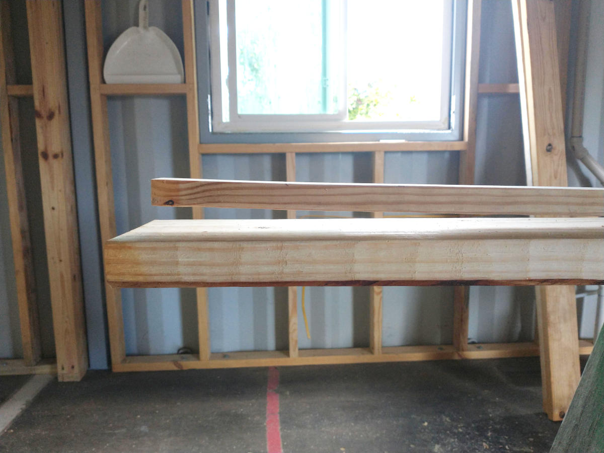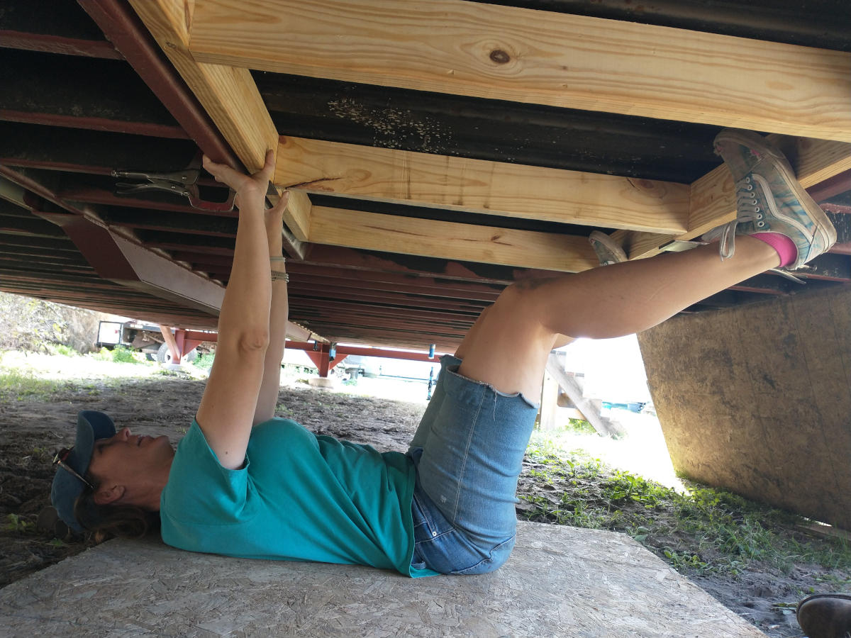 Since I did the dirty work, the Planner did the messy work. All of the understructure was painted with red rust primer to add an additional layer of protection before the foam is applied. Having said this before I am saying it again, we should have built framework to the dwelling taller to allow for ease of movement and storage under the boxes. When planning the boxes I thought it would be cool if the Shop Box, the Work Box, and the Dwelling Box had their roof lines at the same height. In hindsight it doesn’t really matter as the Dwelling Box will eventually get a water collection over roof and a porch that will obstruct the view across the yard to the other boxes anyways. Oh, well. Next time.