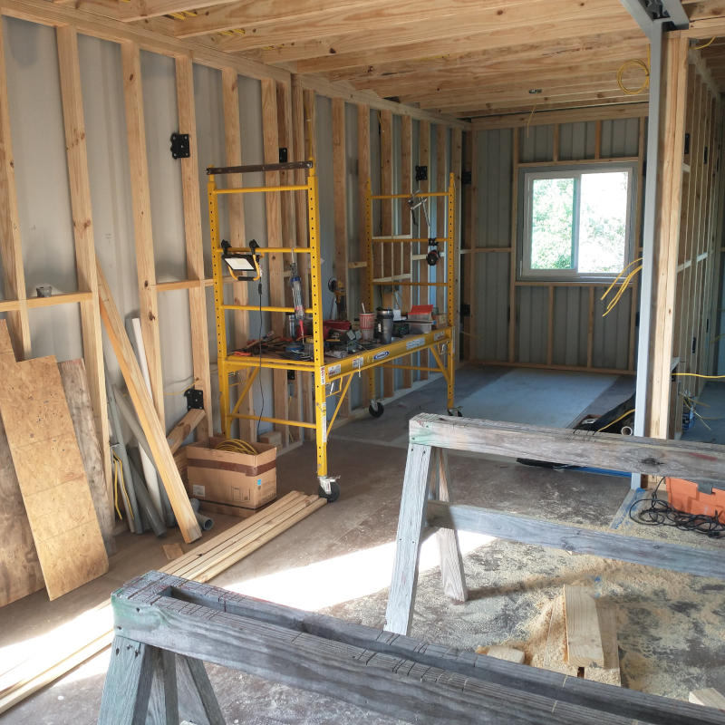 After construction equipment relocation, several sweeps, a vacuum, and some mopping, the Dwelling Box was prepped and ready for spray foam. Now we wait as the crew was delayed for two full weeks! Good grief, what will we do in our free time?